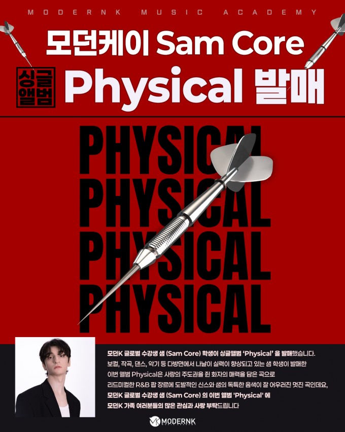 모던K 글로벌 수강생 샘 (Sam Core) 의 이번 앨범 'Physical' 에 모던K 가족 여러분들의 많은 관심과 사랑 부탁드립니다